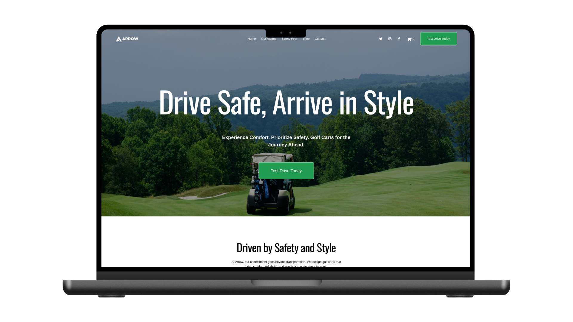 Arrow designs and sells high-quality golf carts with a focus on safety, comfort, and modern aesthetics. With a target audience of college students, the brand blends luxury with practicality—offering sleek, reliable transportation solutions tailored to campus life.