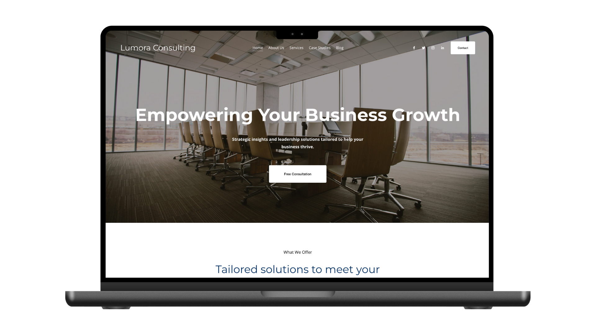 The client needed a modern and trustworthy online presence that reflected their credibility and made it easy for prospective clients to understand their offerings. The goal was to design a homepage that clearly communicates Lumora’s consulting services, showcases their expertise through case studies, and builds trust through polished content and layout.