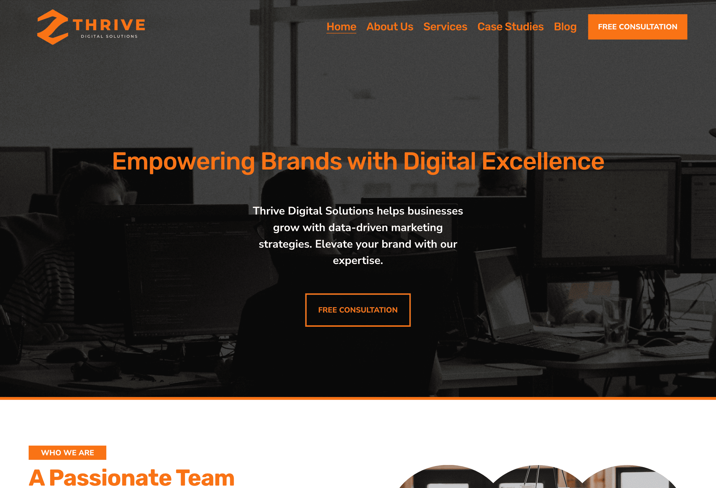 Thrive Digital Solutions needed a modern, high-converting website that effectively showcases their expertise, builds trust, and drives lead generation. The site features a clear, structured layout paired with bold, professional colors, compelling copy, and prominent CTAs designed to engage visitors and encourage contact.